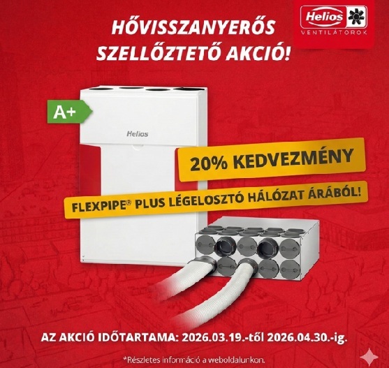 A Helios ventilátorok vezérképviselete akciót hirdet HELIOS központi hővisszanyerős szellőztető rendszereire. A teljes rendszer megrendelése…